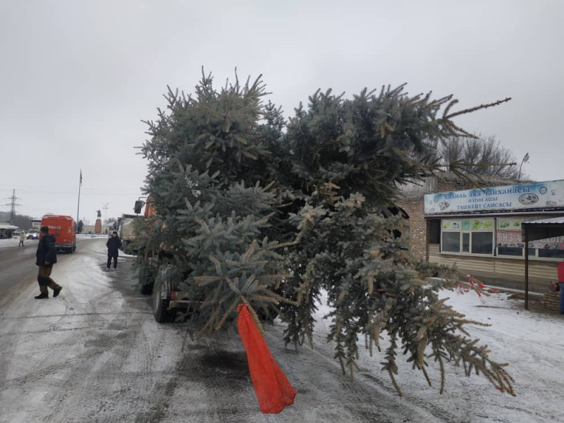 К нам приехали 6 ёлок высотой 6 метров для посадки в парках города. Деревья из Сары-Булакского питомника института леса Национальной академии наук КР (НАН).