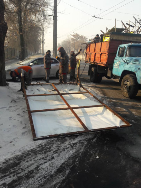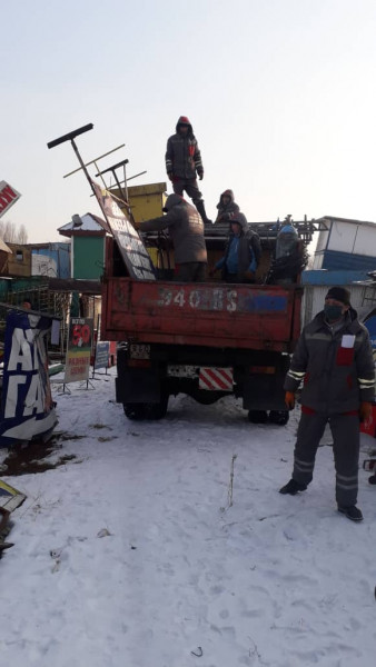 Город продолжает работу. Управление землепользования и строительства (УЗС) и спецподразделение муниципального предприятия «Тазалык» продолжают «очищать» город от самовольно установленных объектов.