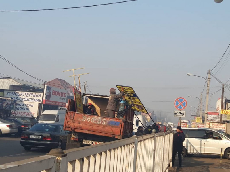 В двух районах города Первомайском и Ленинском 33 рекламные конструкции были убраны с улиц. Не стало цепочек и столбиков самовольной парковки на улице Кольбаева 8.