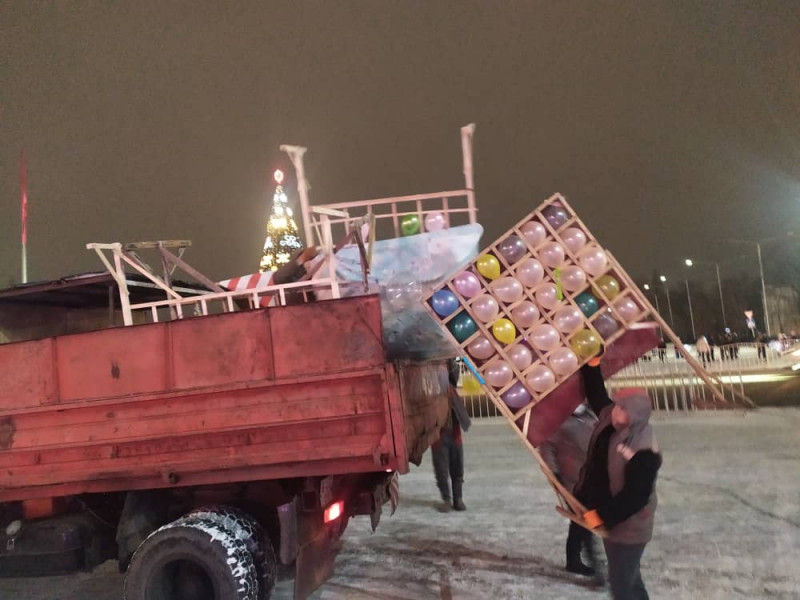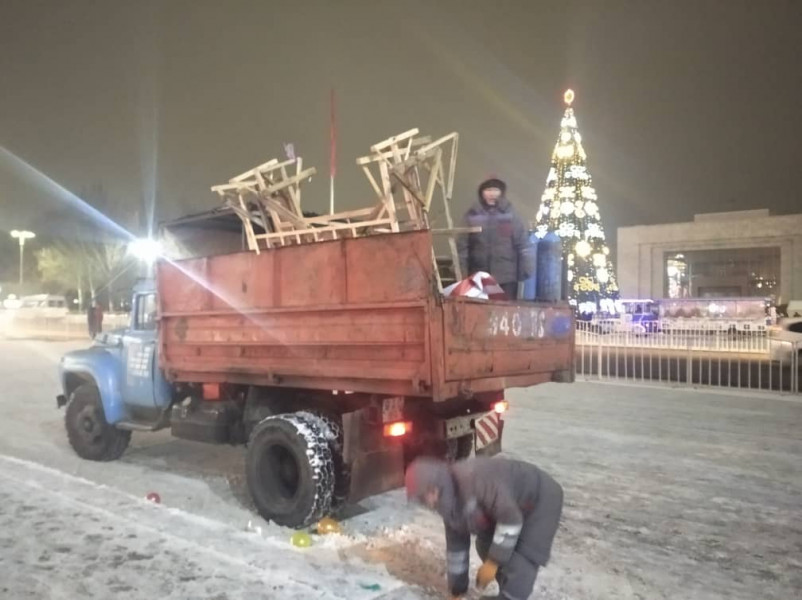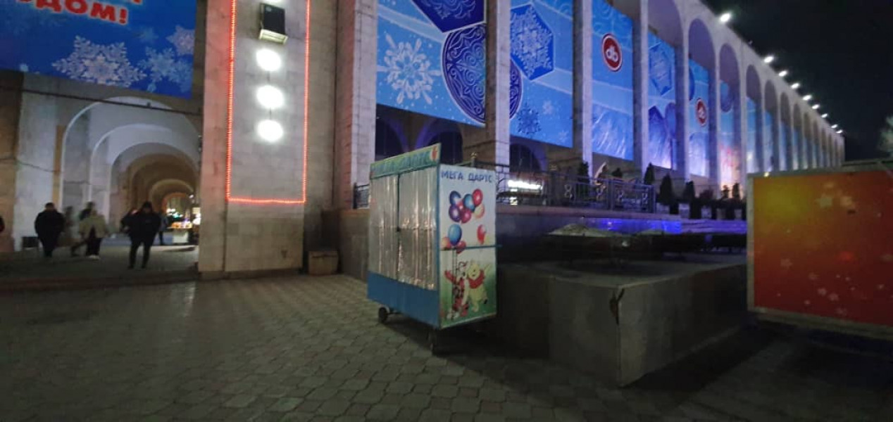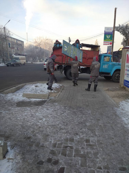 Даже в выходные дни спецотряд убирают незаконку. После разъяснительных работ демонтировано 7 игровых конструкций на площади «Ала-Тоо».
