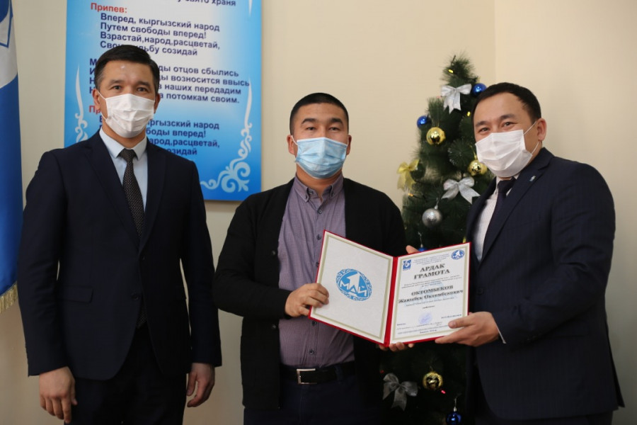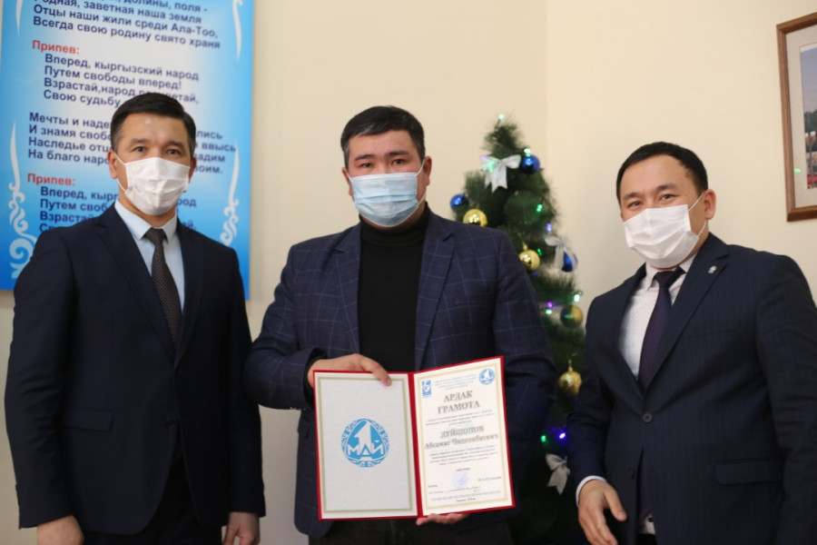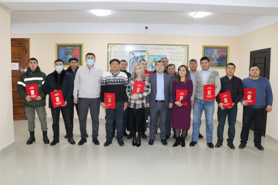 В зале заседаний глава Первомайского района Максат Нусувалиев совместно с заместителем Мавляном Аскарбековым отметили почетными грамотами и благодарственными письмами работников энергоотрасли.