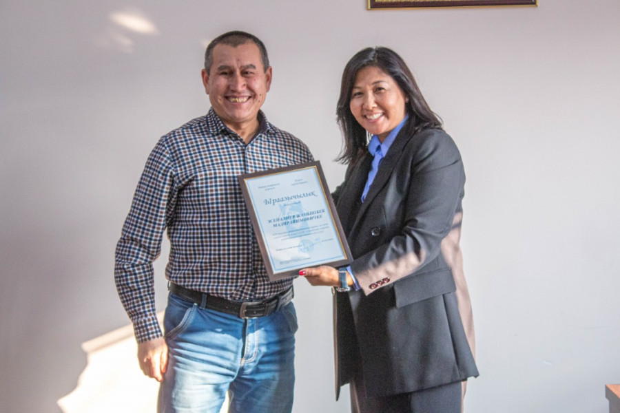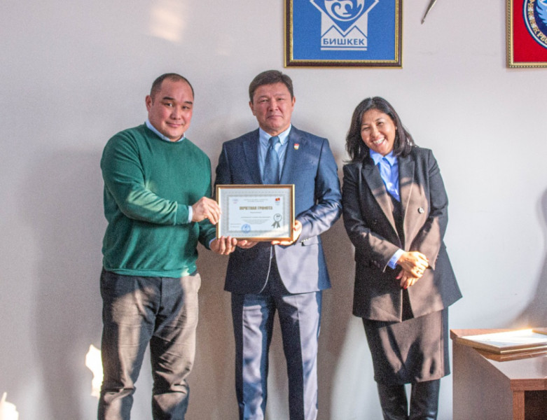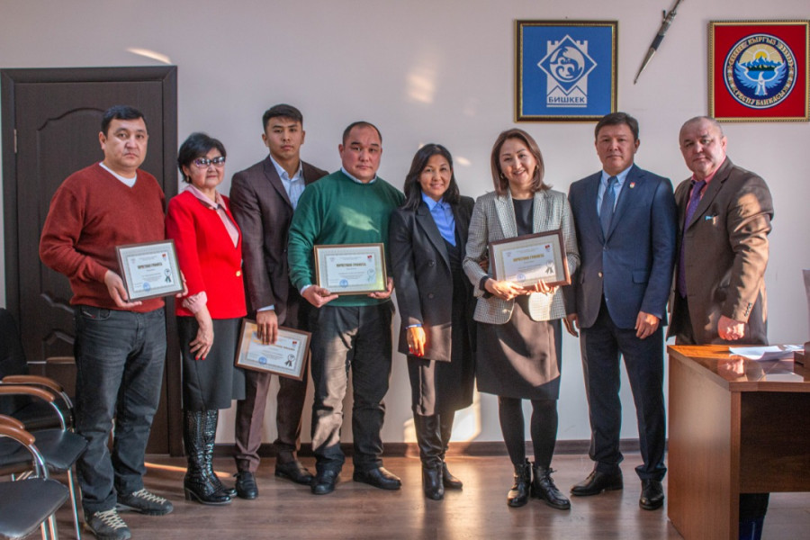 В управлении физической культуры и спорта (УФКиС) столичной мэрии вице-мэр по социальным вопросам Айжан Чыныбаева вместе с вице-президентом национального олимпийского комитета Канатом Аманкуловым наградили сотрудников спортивного сектора, тренеров и инструкторов почетными и благодарственными письмами.