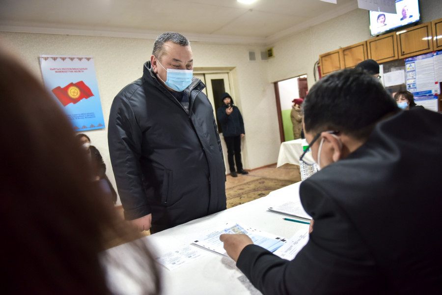 И.о.градоначальника Б.Түлөбаев воспользовался конституционным правом голосовать на участке №1101 в детском саду №79 на улице Политехнической 10.