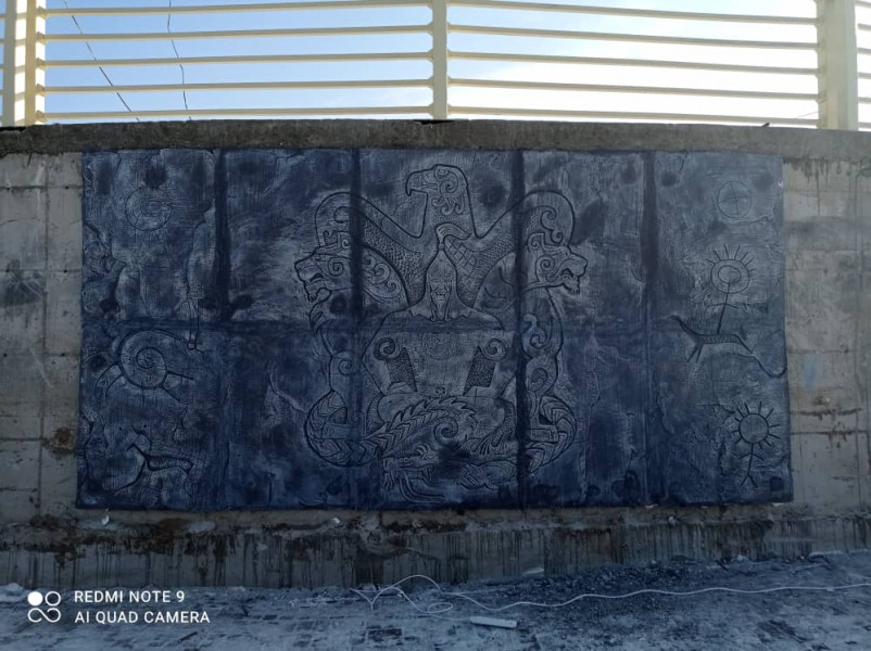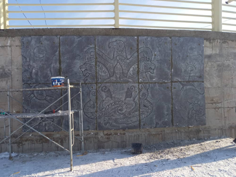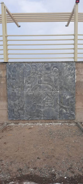 Сейчас многофигурный барельеф находится в процессе создания. Это настенное панно изготовлено для амфитеатра, которое выполнено из гипса.