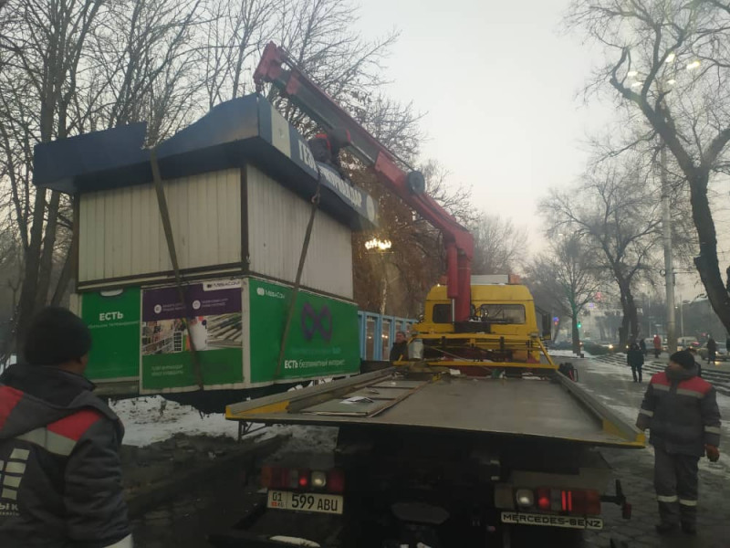Демонтирован и газетный киоск без разрешительных документов на пересечении пр. Чуй и бульвара Эркиндик.
