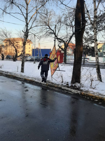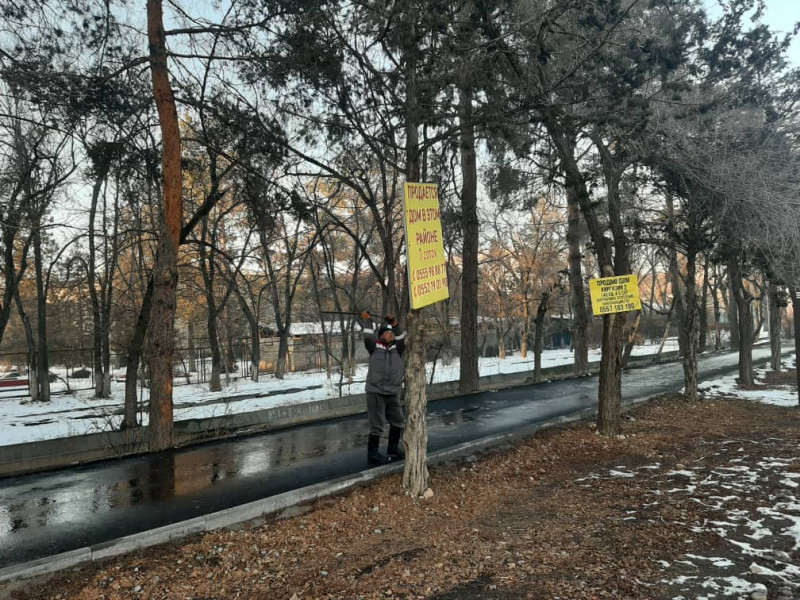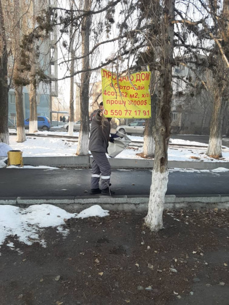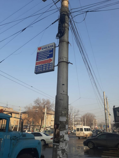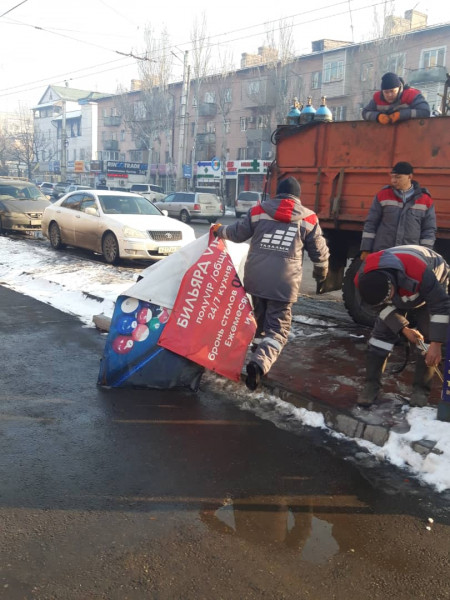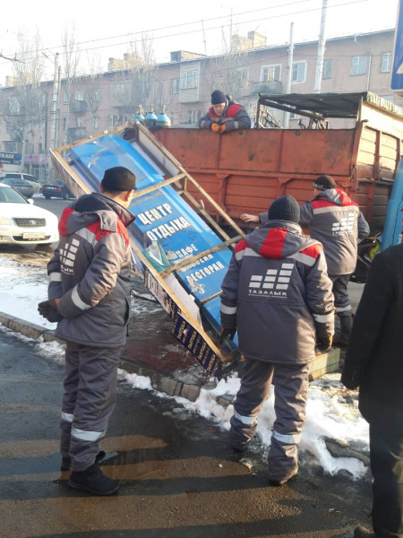 Мы проинспектировали проспект Манаса, ул. Ахунбаева и ул. Байтик Баатыра, очистили тротуары от 46 самовольно установленных рекламных конструкций, вывесок, надписей и плакатов.