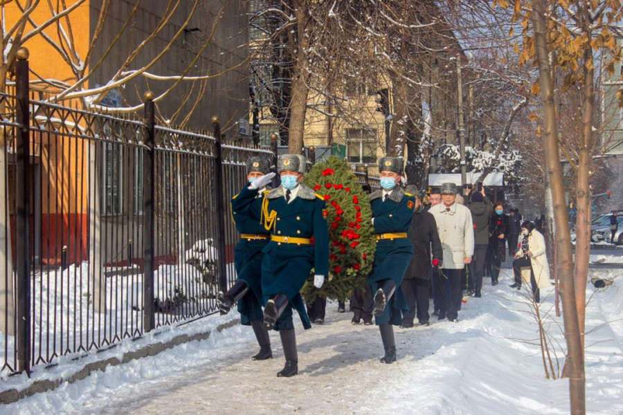 Накануне поисковое движение Кыргызстана «Наша Победа - Биздин Жениш» совместно с международной поисково-исследовательской группой почтили память воинам ВОВ минутой молчания, возложили цветы к мемориалу 40-ой отдельной (курсантской) стрелковой бригады.