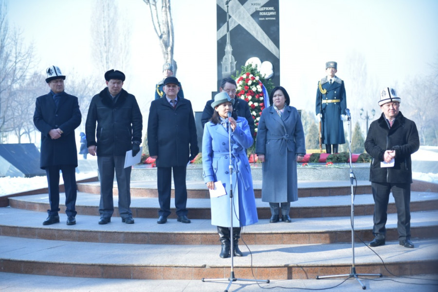 Вспомнить и отдать дань памяти погибшим пришли блокадники Ленинграда, Чрезвычайный и Полномочный Посол России в КР Николай Удовиченко, и.о.министра труда и социального развития КР Ализа Солтонбекова, заместитель заведующего отделом гражданского развития, религиозной и этнической политики аппарата президента КР Максат Усубалиев, зампредседателя Кыргызского общества блокадников Ленинграда Марат Кутанов, депутат Бишкекского городского Кенеша Бактыбек Абдиев и вице-мэр по социальным вопросам Айжан Чыныбаева.