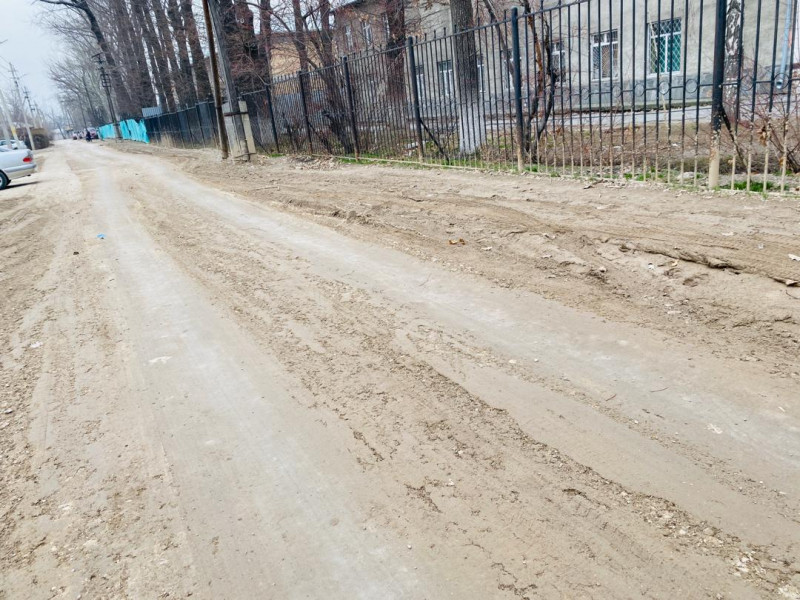 Здесь после прокладки канализационной сети было повреждено асфальтовое покрытие, в связи с осадками состояние дороги ухудшается. Жителям, в особенности детям, тяжело ходить в школу, детский сад.
