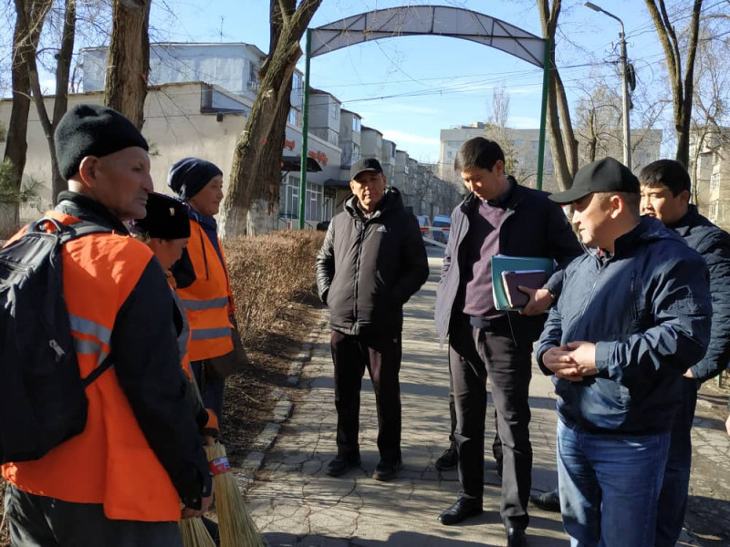 Аким Октябрьского района Данияр Арпачиев совместно с сотрудниками МП «Бишкекзеленхоз», «Тазалык», санитарно-экологической инспекции (СЭИ), управления землепользования и строительства (УЗС) и начальниками МТУ №9, №11 провел соблюдение чистоты и порядка в микрорайонах №7, №6, №5 и №4.