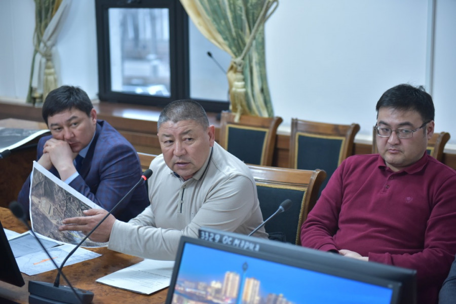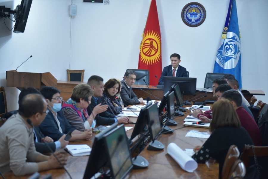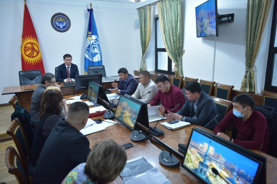 В зале заседания столичной мэрии состоялось совещание по вопросу установления административных границ города Бишкек под председательством вице-мэра столицы по земельным вопросам, строительству и архитектуре Азамата Сагындык уулу.