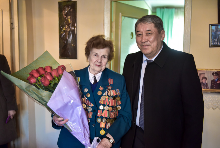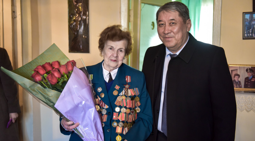 Сначала мы проведали почетного ветерана КР Касатых Валентину Андреевну. Она родилась 15 мая 1927 года в Пермской области РФ. Служила в составе НКВД по охране военных объектов Авиационного завода имени Чкалова города Новосибирск. Далее проходила службу в составе НКВД Украинского фронта, разведка «Смерш» с 1943 по 1945 годы.