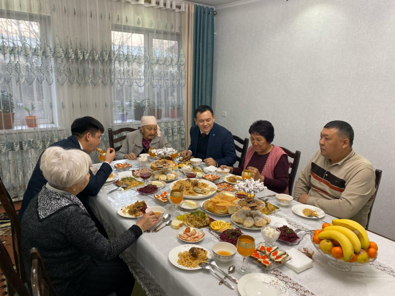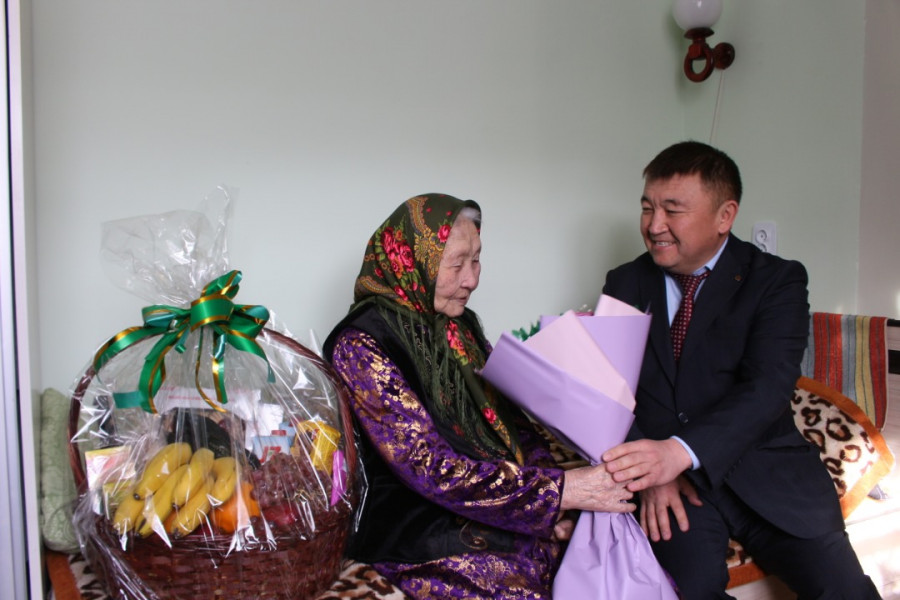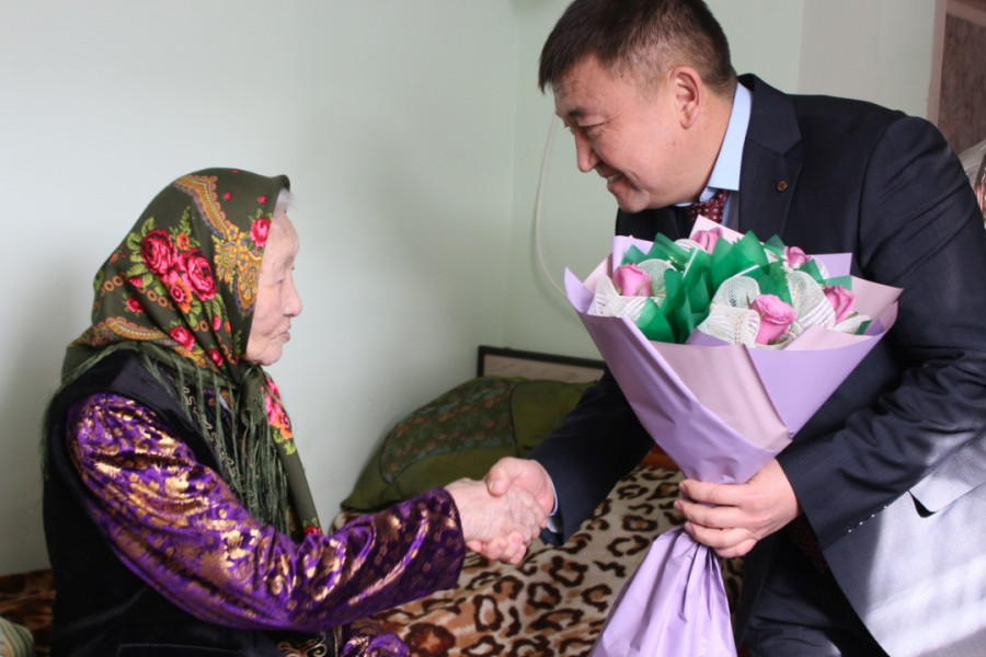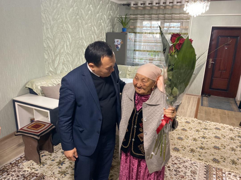 Аким Октябрьского района Данияр Арпачиев вручил Эрмек Аргимаевой подарки, продуктовую корзину и материальную поддержку в размере пяти тысяч сомов. Глава Первомайского района Максат Нусувалиев поздравил с 102-летием долгожительницу Сокен Усенову, вручил подарки.