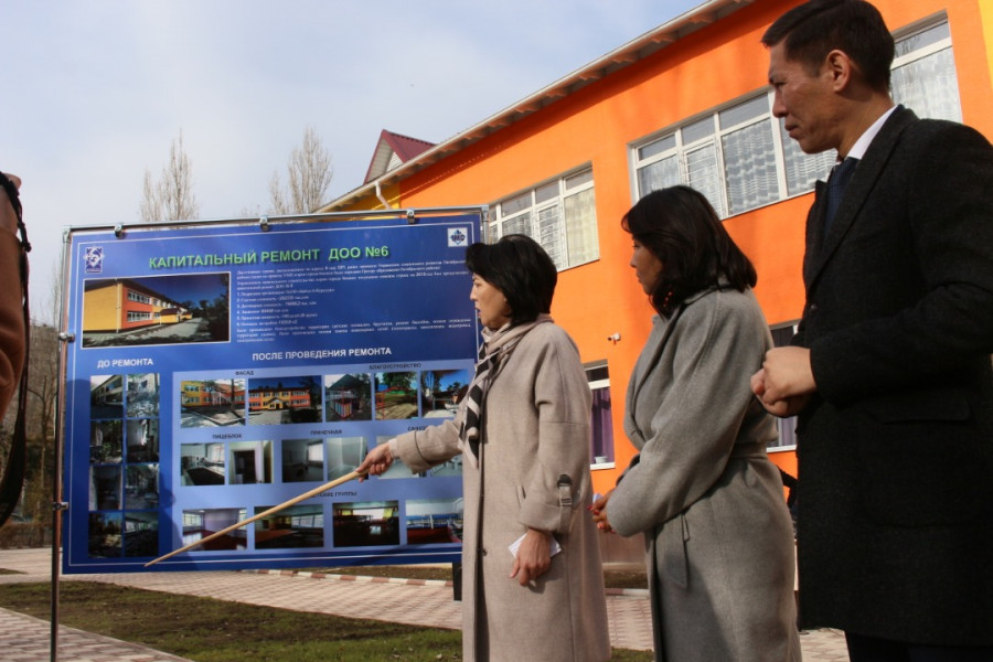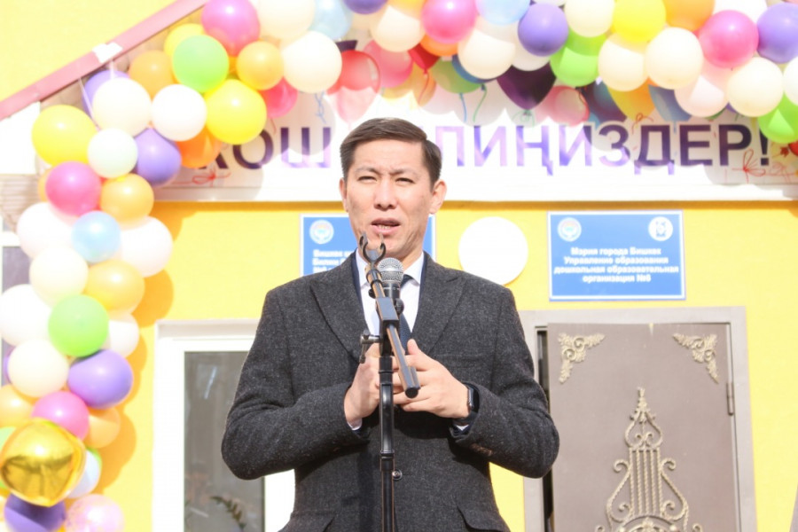 Обновленную дошкольную образовательную организацию (ДОО) открыли педагоги, горожане, вице-мэры столицы Айжан Чыныбаева, Азамат Сагындык уулу и аким Октябрьского района Данияр Арпачиев.