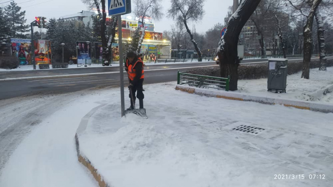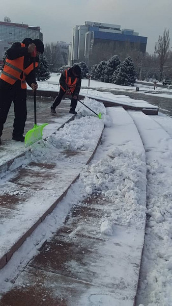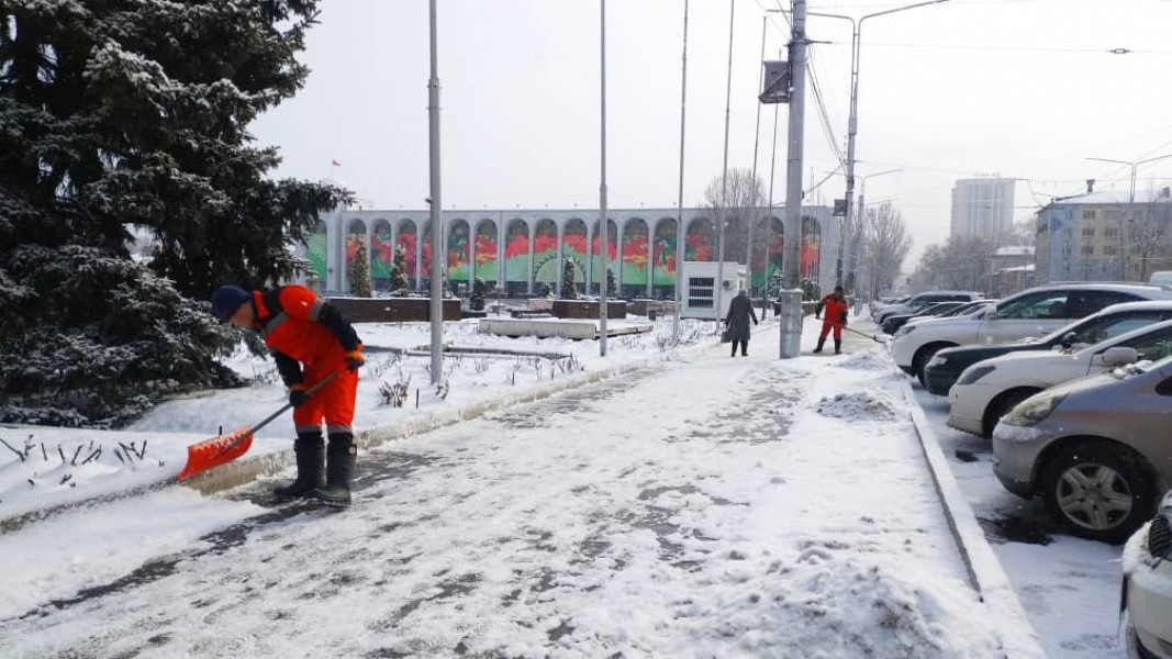 В штатном режиме по городу Бишкек работают порядка 648 дворников, 118 грузчиков Тазалыка и команда из ста человек по вывозу ТБО.
