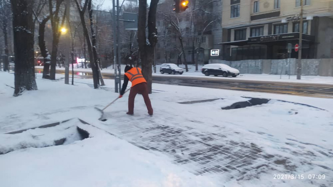 По уборке снега, льда, посыпке солью проезжей части дорог и тротуаров на остальной территории можете отправлять обращения на WhatsApp столичной мэрии: 0554 182 185 или звонить по номерам: 1840 и 1850 круглосуточно.