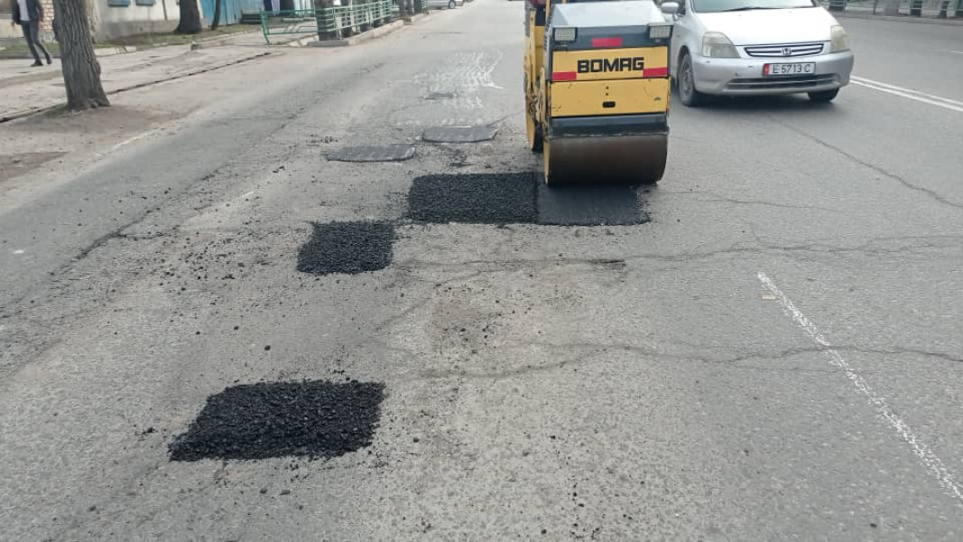 Прямо сейчас мы проводим ямочный ремонт на перекрестке улиц Гагарина и Кырк-Кыз, на ул. Байтик Баатыра (Абрахманова) от ул.Медерова до ул. К.Баялинова (восточная сторона).