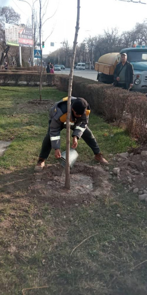 Отметим, что с начала года по всему городу сотрудники Бишкекзеленхоза высадили 1.598 лиственных, 2.135 хвойных деревьев и 437 кустарников.