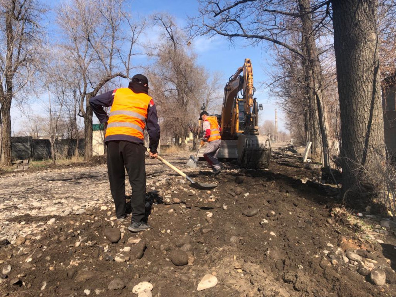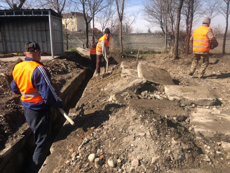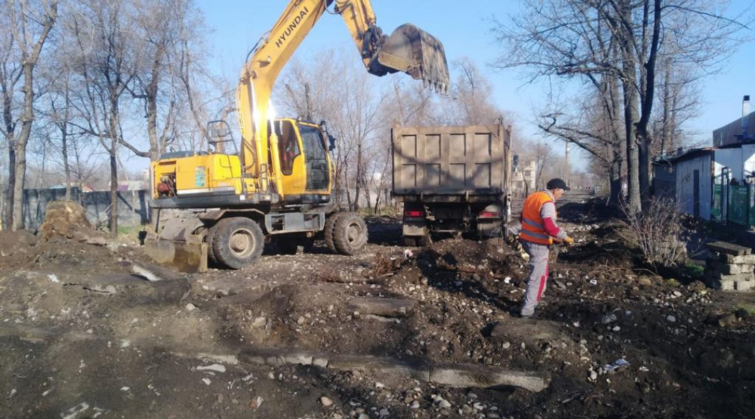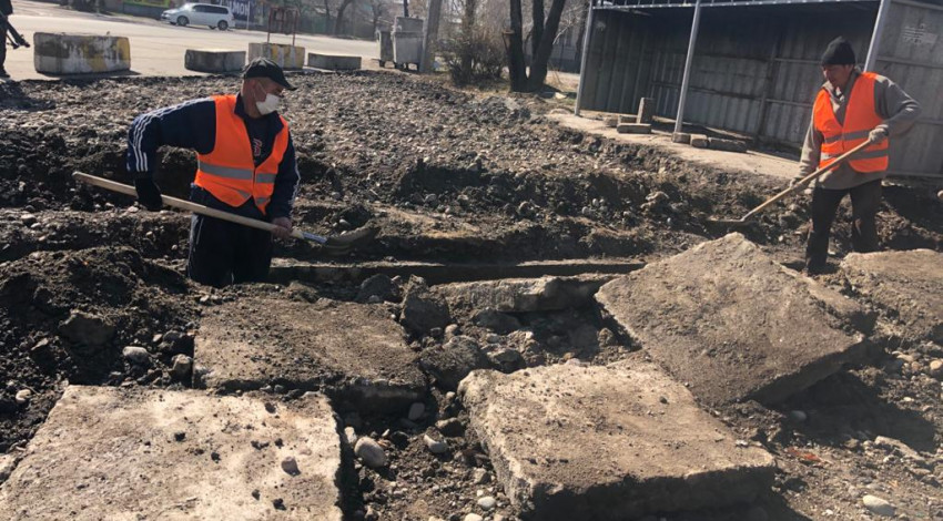 На вышеуказанных участках проводится кирковка старого асфальта, демонтаж старых бордюров, очистка люков, ирригации и вывоз мусора,