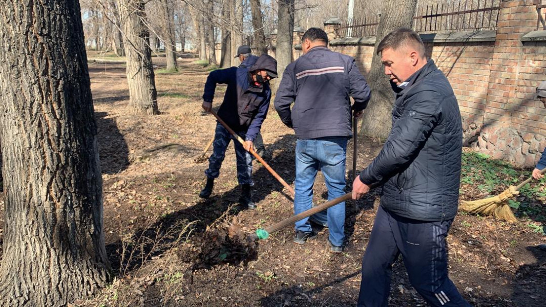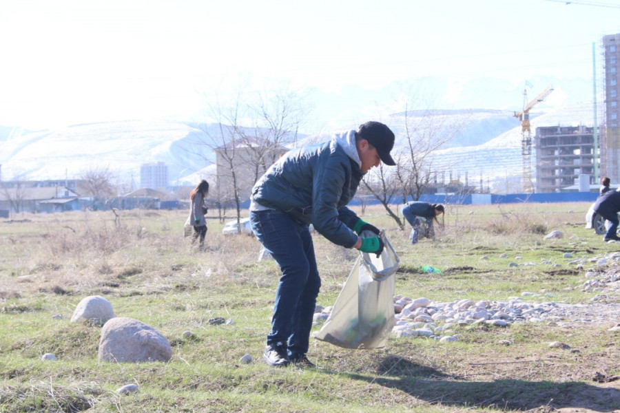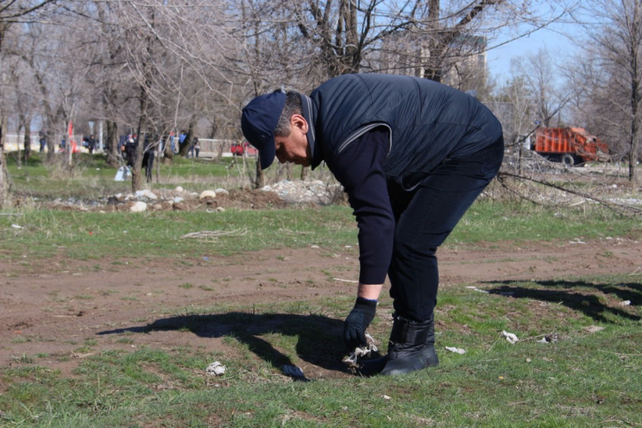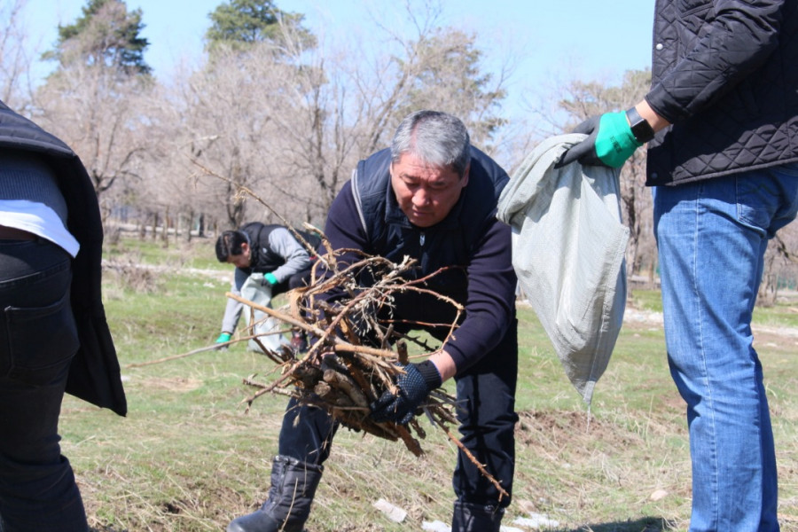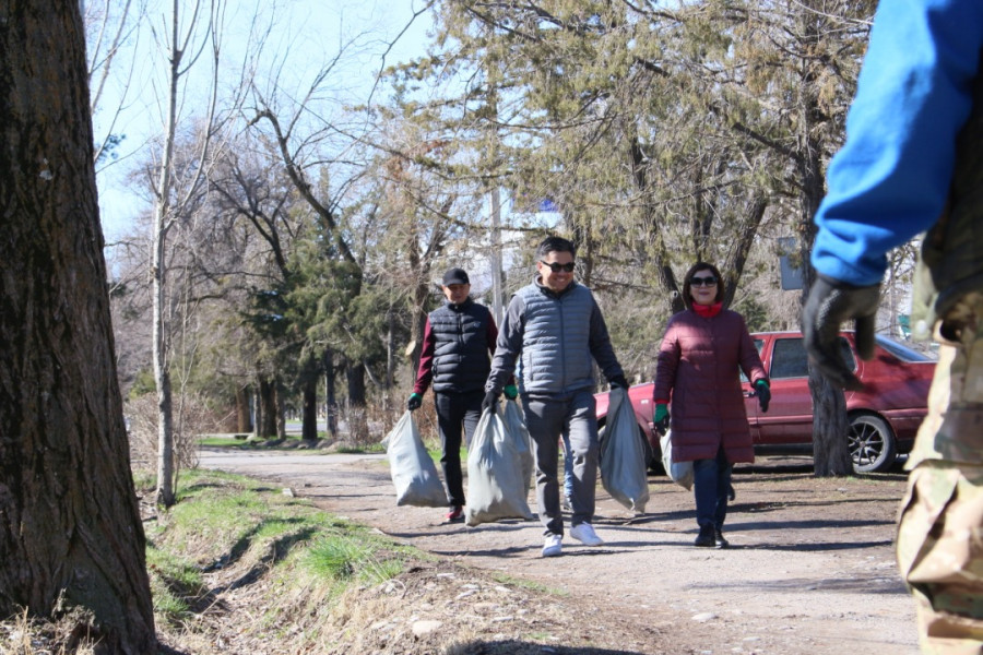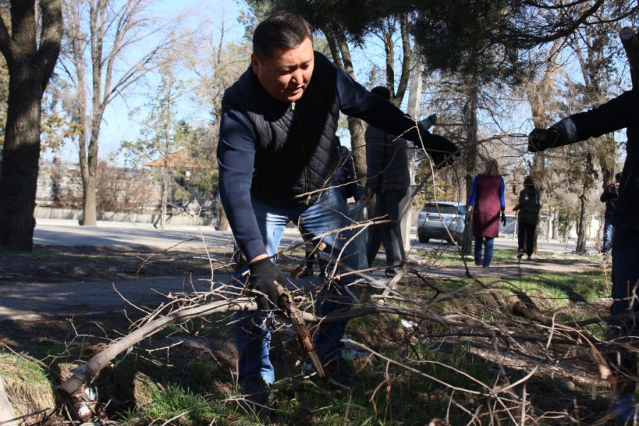 Субботним утром бишкекчане вышли на традиционный общегородской субботник.