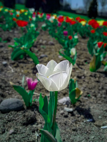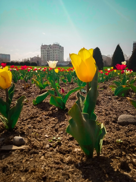 На столичных клумбах потихоньку начали цвести тюльпаны, которые были посажены трудолюбивыми сотрудниками муниципального предприятия «Бишкекзеленхоз» осенью прошлого года.