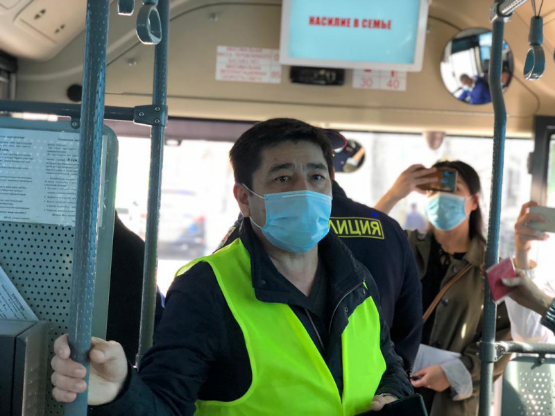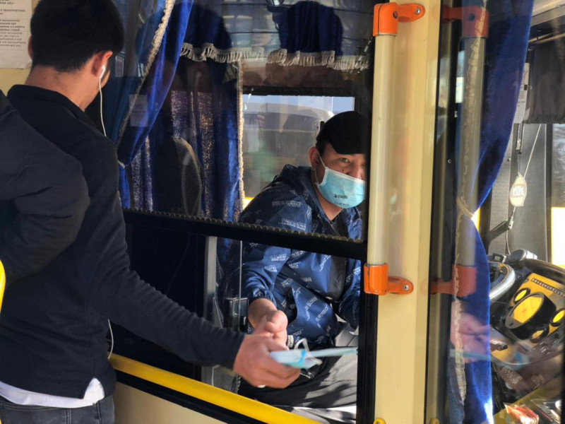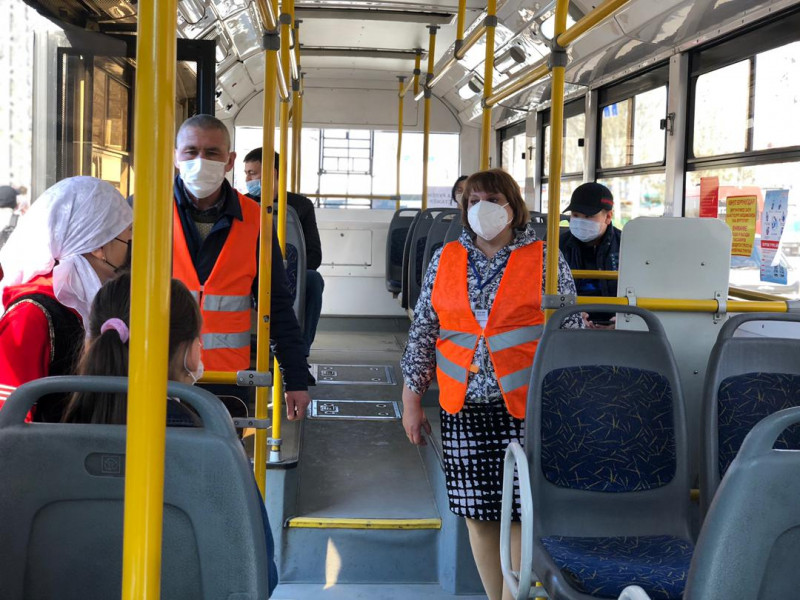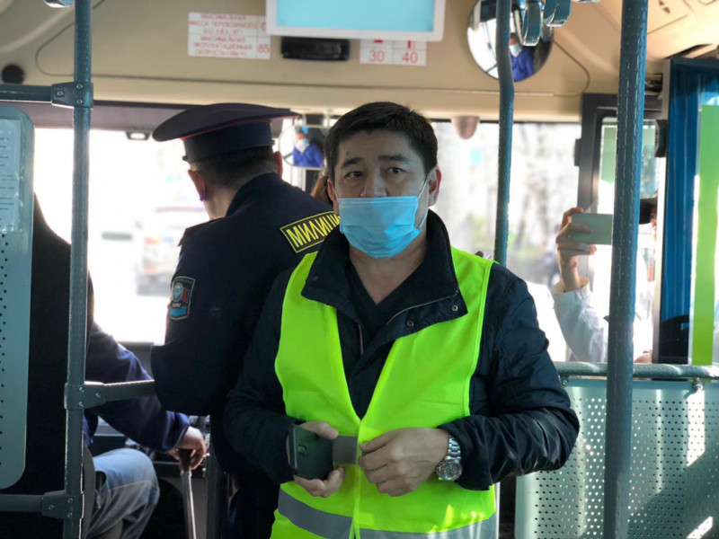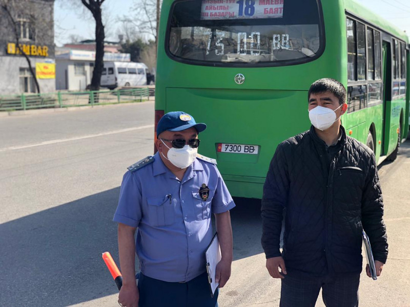 Мобильные группы в составе: специалистов управления городского транспорта (УГТ), троллейбусного управления (БТУ) и автобусного парка (МП «БПАТП») совместно с УПСМ, ЦГСЭН г. Бишкек, транспортной инспекцией при министерстве транспорта и дорог КР, ежедневно проверяют соблюдение санитарных правил в салонах общественного транспорта.