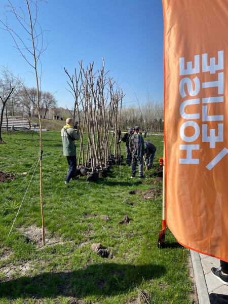 Сотрудники строительной компании Elite House посадили 30 катальп и 340 кустарников, которые будут окаймлять территорию, которая находится за сценой.