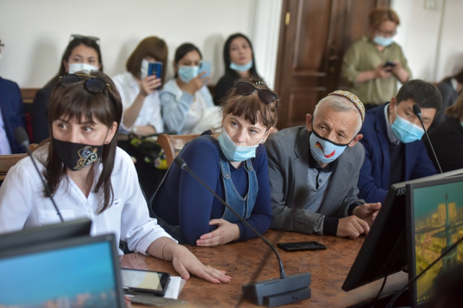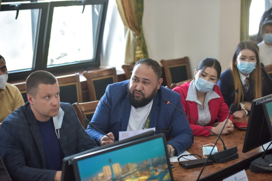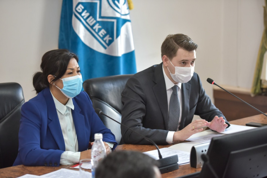 В зале заседаний столичной мэрии состоялась встреча первого вице-премьер-министра КР Артема Новикова и вице-мэра столицы по социальным вопросам Айжан Чыныбаевой с представителями волонтерских движений.