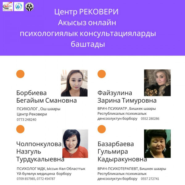 Городское управление здравоохранения (ГУЗ) столичной мэрии совместно с фондом «Сорос-Кыргызстан» и центром «Рековери» запустили проект по оказанию психологической консультации для горожан.