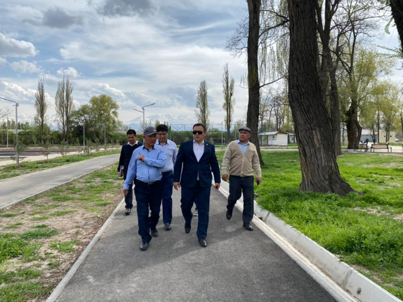 Глава района Максат Нусувалиев совместно с городскими службами проинспектировал новый парк на пересечении улиц Манаса и Боталиева.
