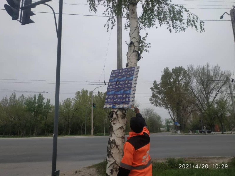 Кроме того, под «чистку» попали рекламные конструкции по улице Анкара от улицы 7 апреля до улицы Ауэзова.