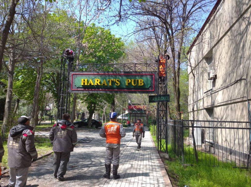 Кафе «Харатц Паб», распложенное на пересечении проспекта Чуй и улицы Абдрахманова, осталось без металлической арки, не было разрешения на установку.