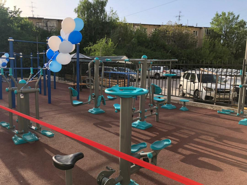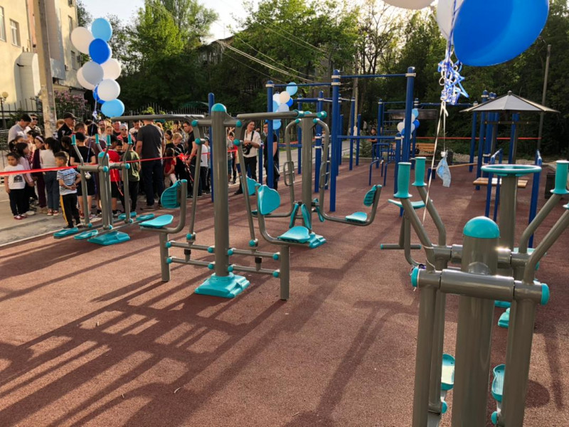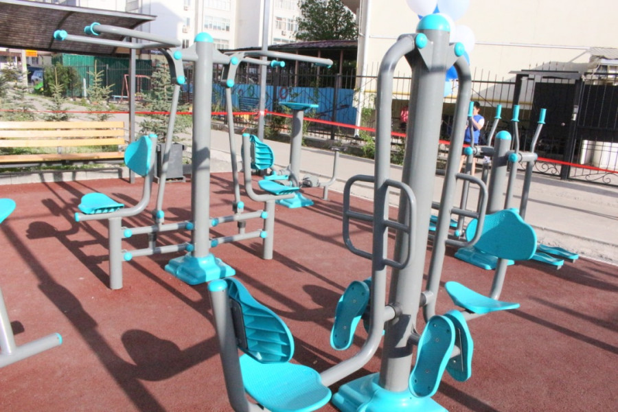Для организации площадки здоровья был выделен земельный участок площадью 0,016 га. На этом месте установлено 14 тренажеров, для безопасности детей и горожан территория спортплощадки уложена резиновым трамвобезопасным покрытием. Конечно же, проведено освещение, установлены скамейки с навесом и урны.