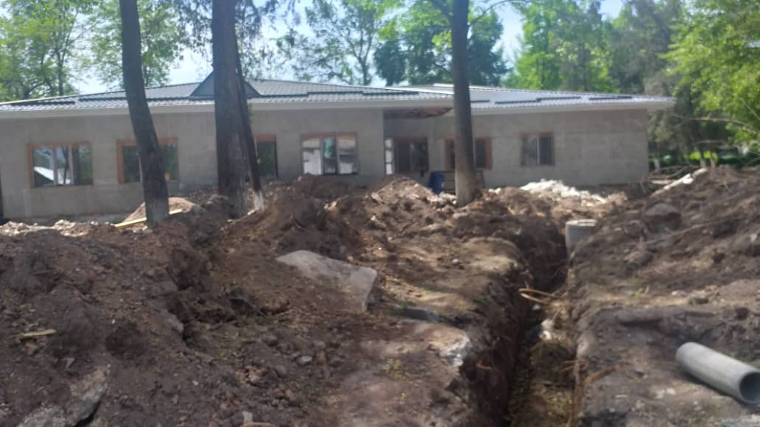 На 6 мая выполнено 85 % от общего объёма работ, завершены штукатурные работы, устройство кровли, установлены окна, выполнены утепления наружных стен и перекрытия, завершены внутренние электромонтажные работы, проведена внутренняя канализация, водопровод и система отопления, закончена прокладка теплотрассы и подключена к котельной.