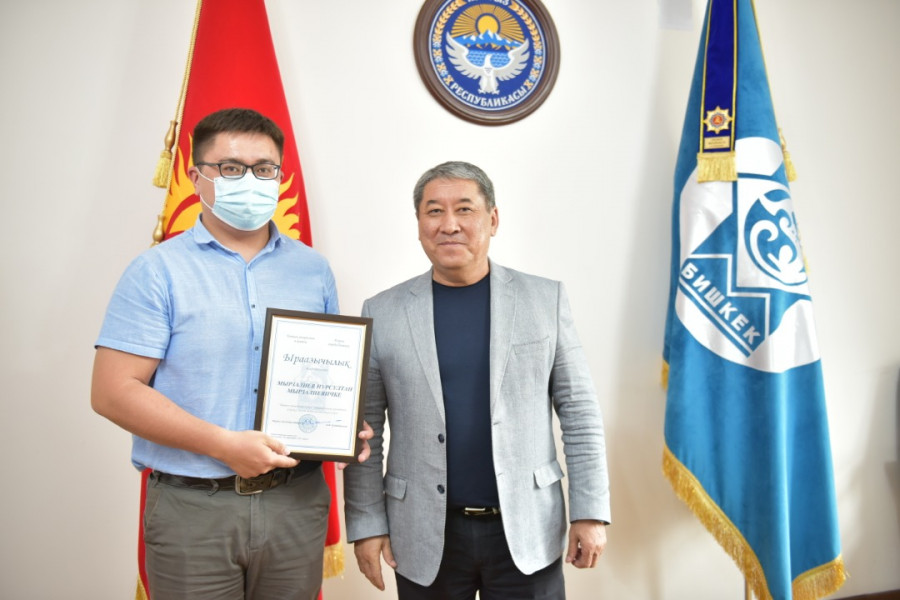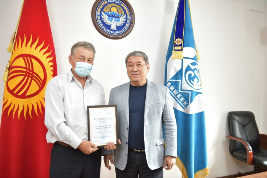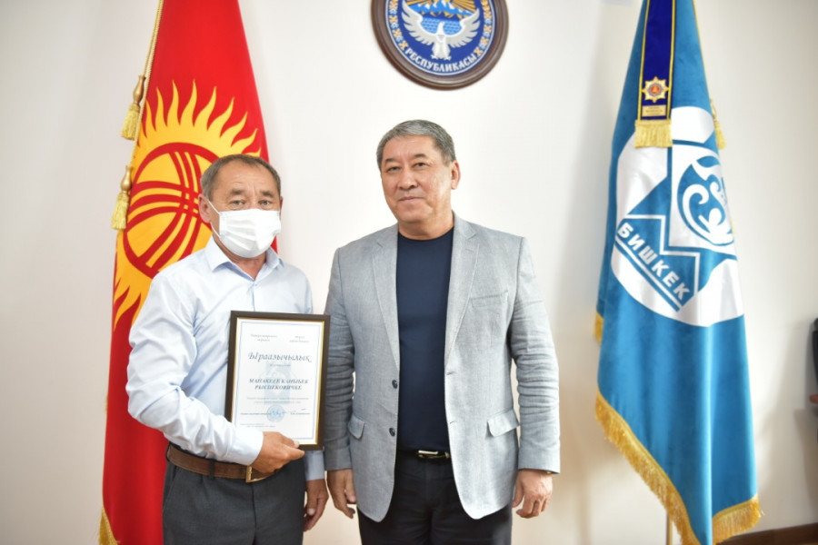 В этом году 29 апреля нашему городу исполнилось 143 года. В честь праздника исполняющий обязанности мэра города Бишкек Бактыбек Кудайбергенов тепло поблагодарил сотрудников городских служб, вручил благодарственные письма и почетные грамоты мэрии города Бишкек.