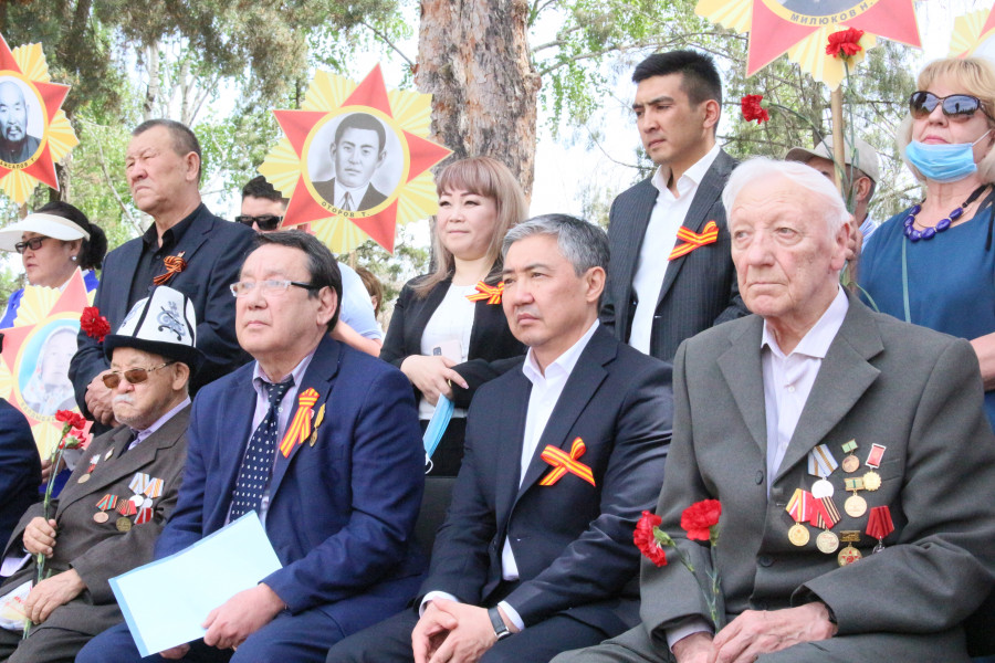 Вспомнить и отдать дань памяти погибшим пришли ветераны ВОВ и жители района, первый вице-мэр города Бишкек Алмаз Бакетаев, зампредседателя Кыргызского общества блокадников Ленинграда Марат Кутанов.