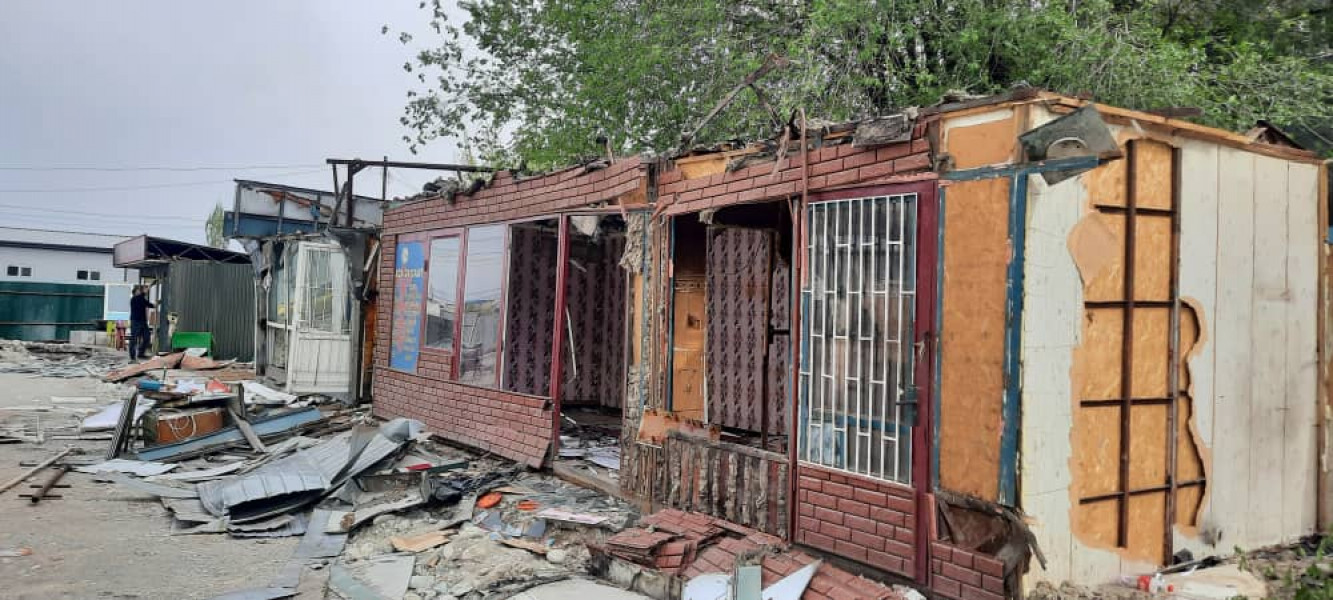 В рамках строительства дорог демонтированы забор и магазин на ул. Манаса, 185/5, по улице Шота Руставели убраны металлический забор и объект капитального строения под охранное помещение, а на улице Ташкентской не стало капитального забор, ворот и три киоска.