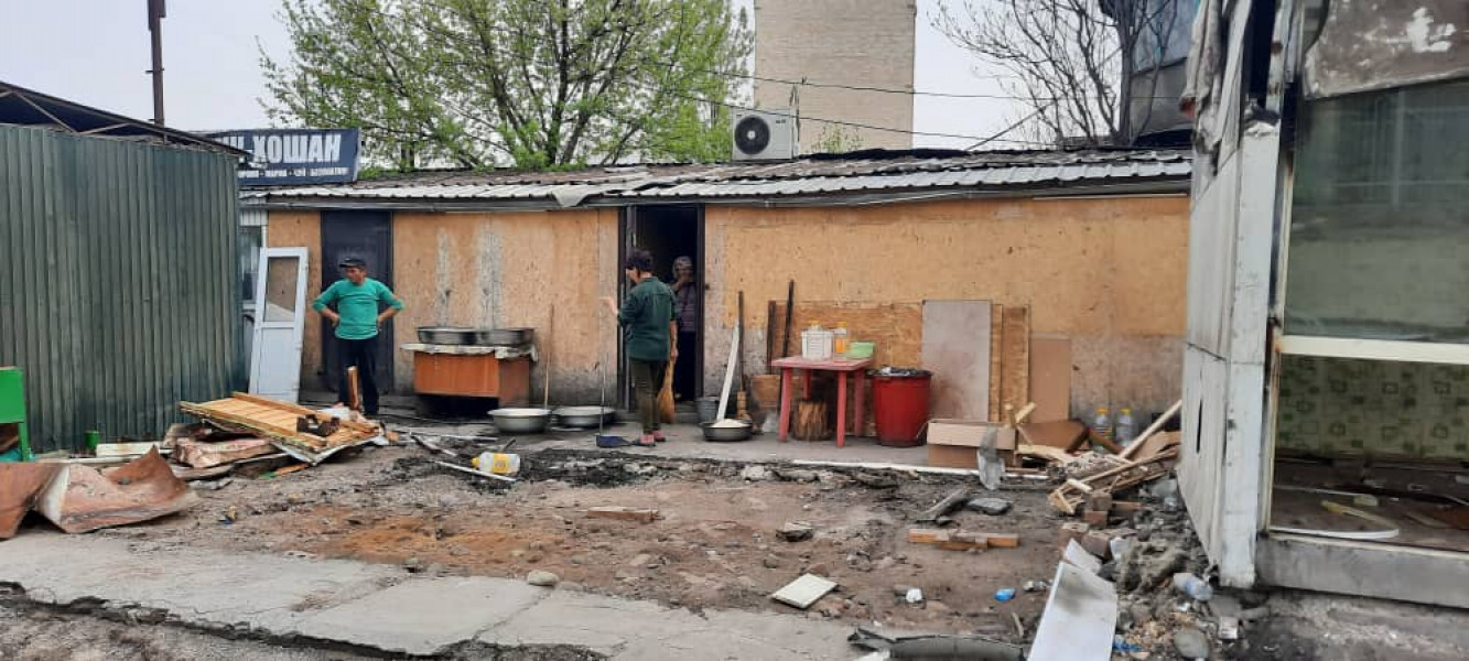 После разъяснительных работ в добровольном порядке демонтирована пристройка к павильону на улице Токтоналиева.