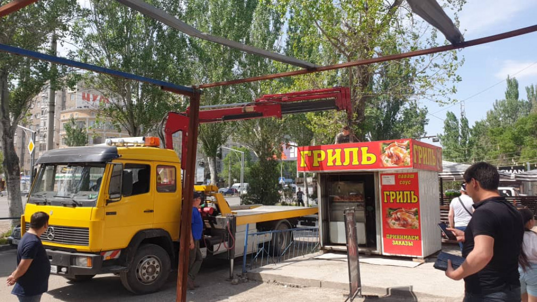 Также демонтированы шиномонтажная мастерская и навес из легкой конструкции на ул. Льва Толстого, точка по продаже курицы-гриль на пересечении улиц Ибраимова и Боконбаева.