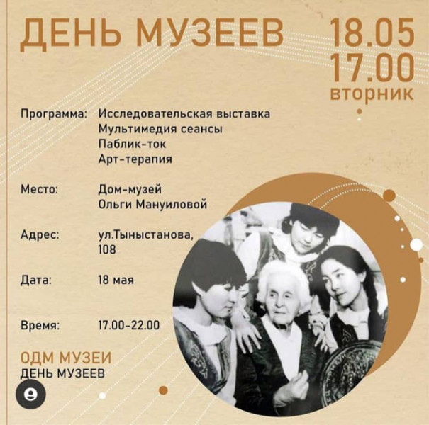 - Мемориальный дом-музей Ольги Мануиловой по адресу: ул.Тыныстанова №108, тел. 66 11 74;