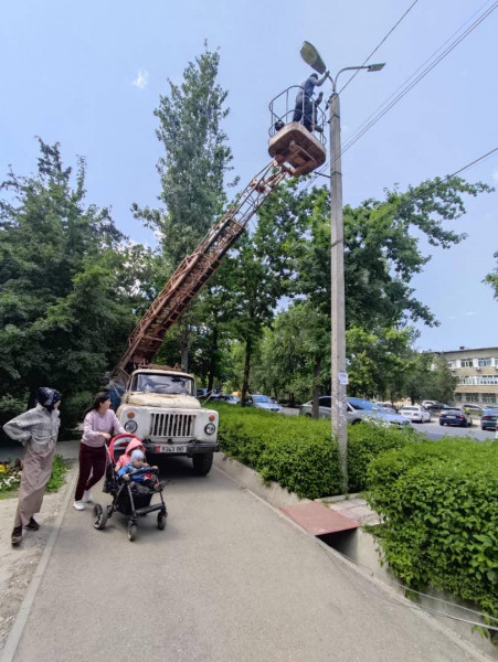 На территории Первомайского района по ул. Профессора Зимы от ул. Ташкентской до ул. Баялинова проведен ремонт 4 светильников, на пересечении бульвару Эркиндик и ул. Токтогула зажжен ещё один светильник.