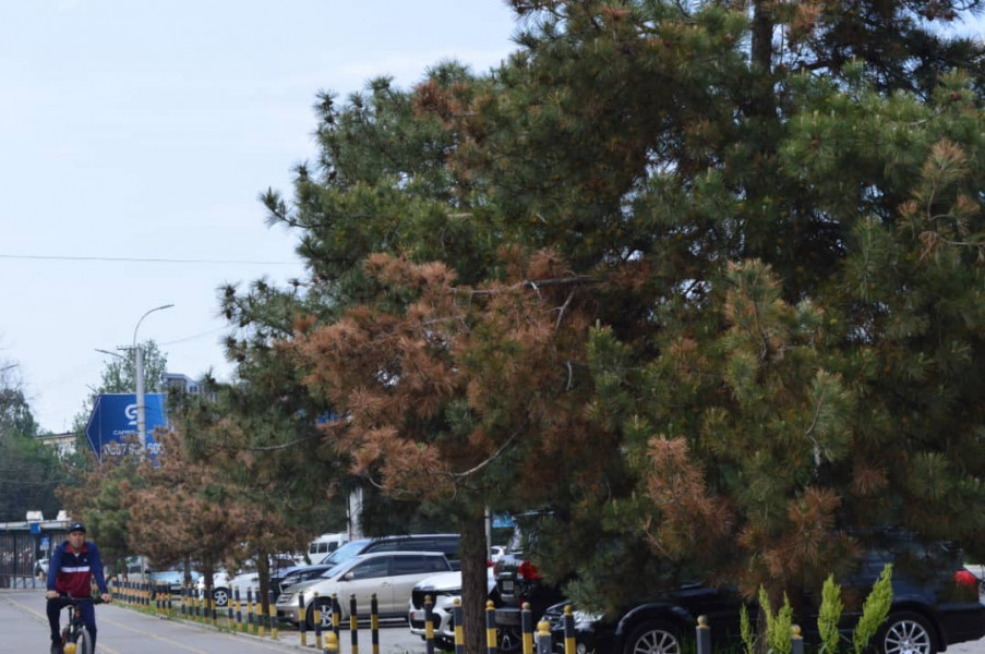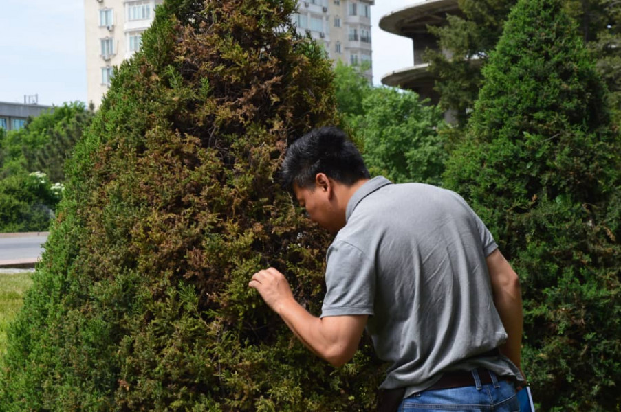 В столице продолжается борьба с паразитами деревьев. Сотрудники муниципального предприятия «Бишкекзеленхоз» совместно с одним из ведущих энтомологов национальной академии наук КР Иваном Хегай провели плановую проверку столичных можжевельников.