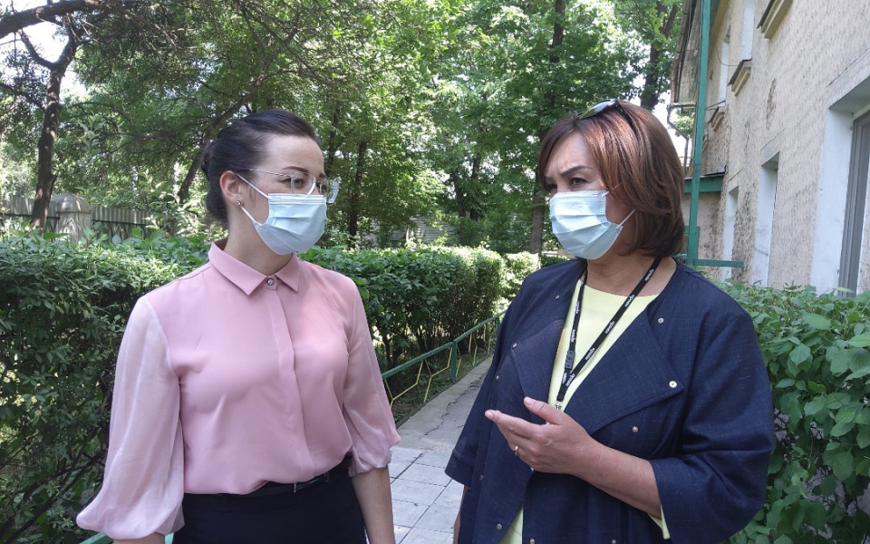 Вице-мэр Виктория Мозгачева и начальник управления социального развития (УСР) г.Бишкек Майрам Мамбетова ознакомились с летним графиком работы первого муниципального кризисного центра для женщин с детьми, пострадавших от семейного насилия «Аялзат».