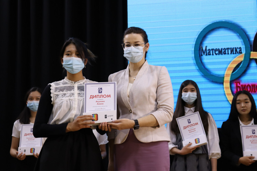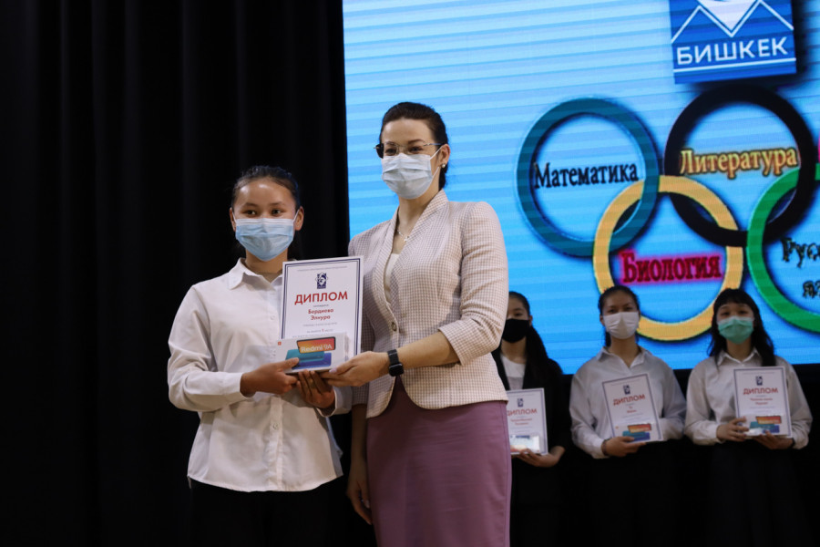 Сегодня вице-мэр по социальной политике Виктория Мозгачева наградила победителей III этапа Республиканской (городской) олимпиады школьников по общеобразовательным предметам.