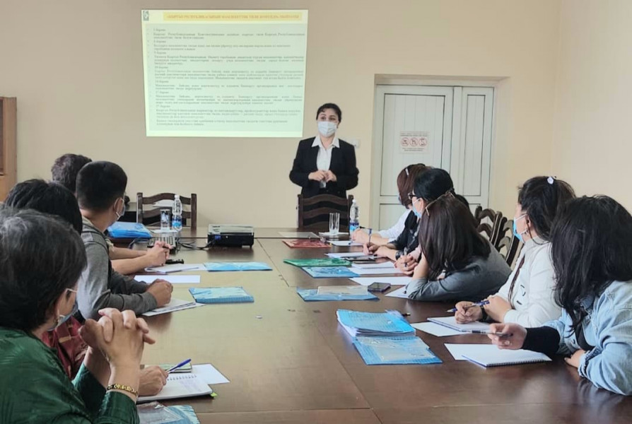 Также проводятся 3-х месячные обучающие курсы по темам «Изучаем кыргызский язык» и «Деловой кыргызский язык» по ведению делопроизводства на государственном языке.