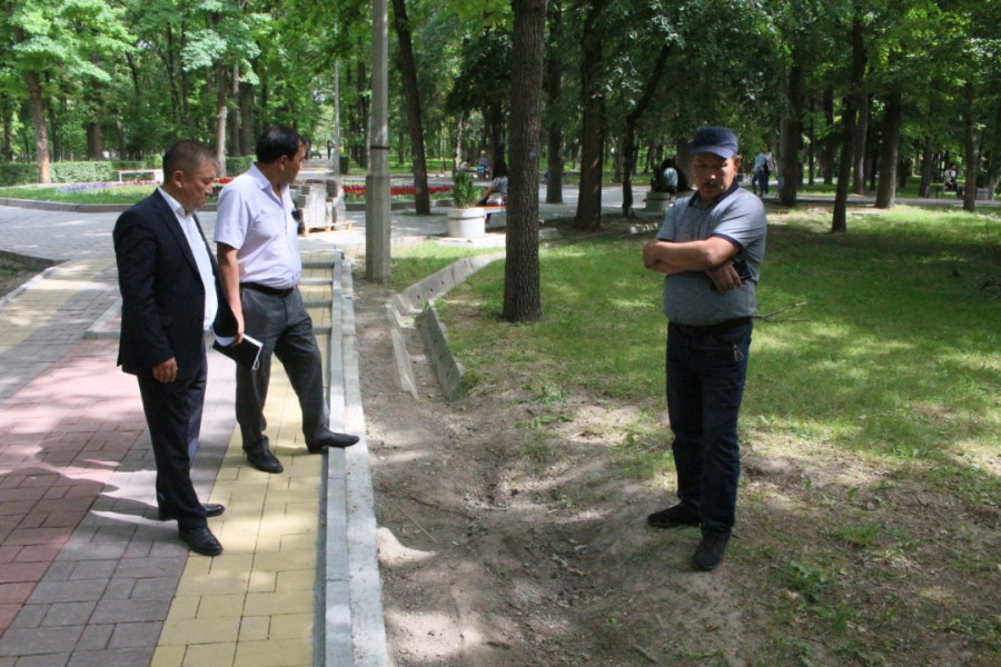 Глава Октябрьского района Данияр Арпачиев ознакомился с ходом реконструкции сквера «Физкультурный».