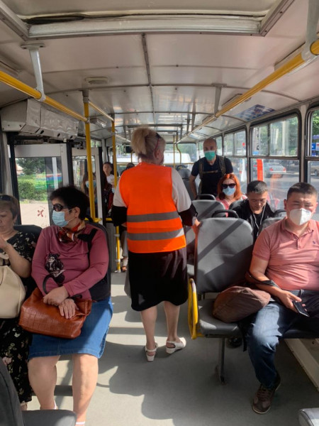 Мобильные группы продолжают работу по соблюдению санитарных правил в общественном транспорте.