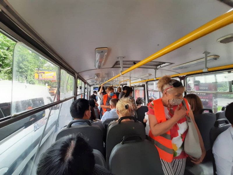 Проверка по соблюдению санитарных правил в салонах общественного транспорта состоялась с участием 20 сотрудников Бишкекского троллейбусного управления (БТУ).