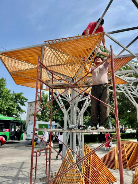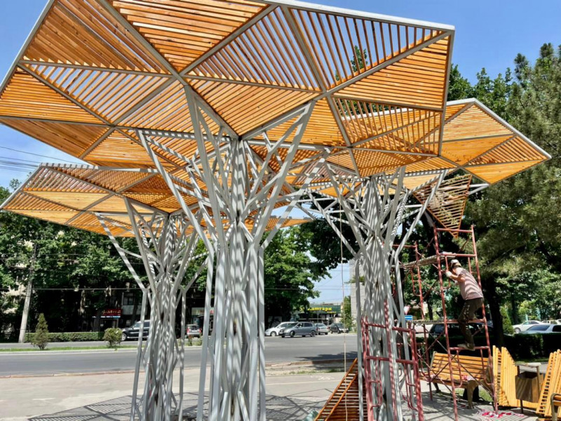 В сквере по проспекту Чуй микрорайона «Восток-5» установили три теневых навеса в форме зонта
