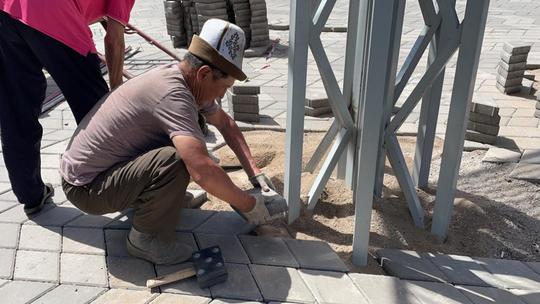Город продолжает работу. МП «Бишкекасфальтсревис» обустраивает сквер в микрорайоне «Восток-5».